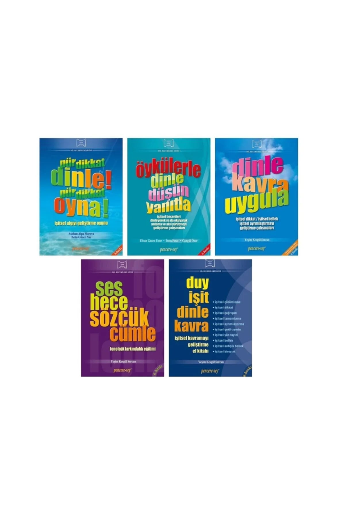 Duy İşit Dinle Kavra (1. Cilt): Serinin temel kitabıdır. İşitsel işlemleme süreçlerini destekleyerek çocuğun dikkati toplama, bilgiyi zihinde araştırma ve söze dökme becerilerini harekete geçirir.
