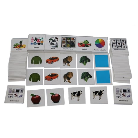 Çocukların kapsamlı dil, bilişsel ve algısal becerilerini geliştirmek için tasarlanmış Eşleme ve Kavram Kartları Yeni seti ile tanışın! Toplam 280 karttan oluşan bu zengin set, Hayvanlar, Meyveler, Sebzeler, Taşıtlar, Giysiler, Ev araç-gereçleri, Renkler ve Şekiller gibi temel kategorilerde görseller sunmaktadır.