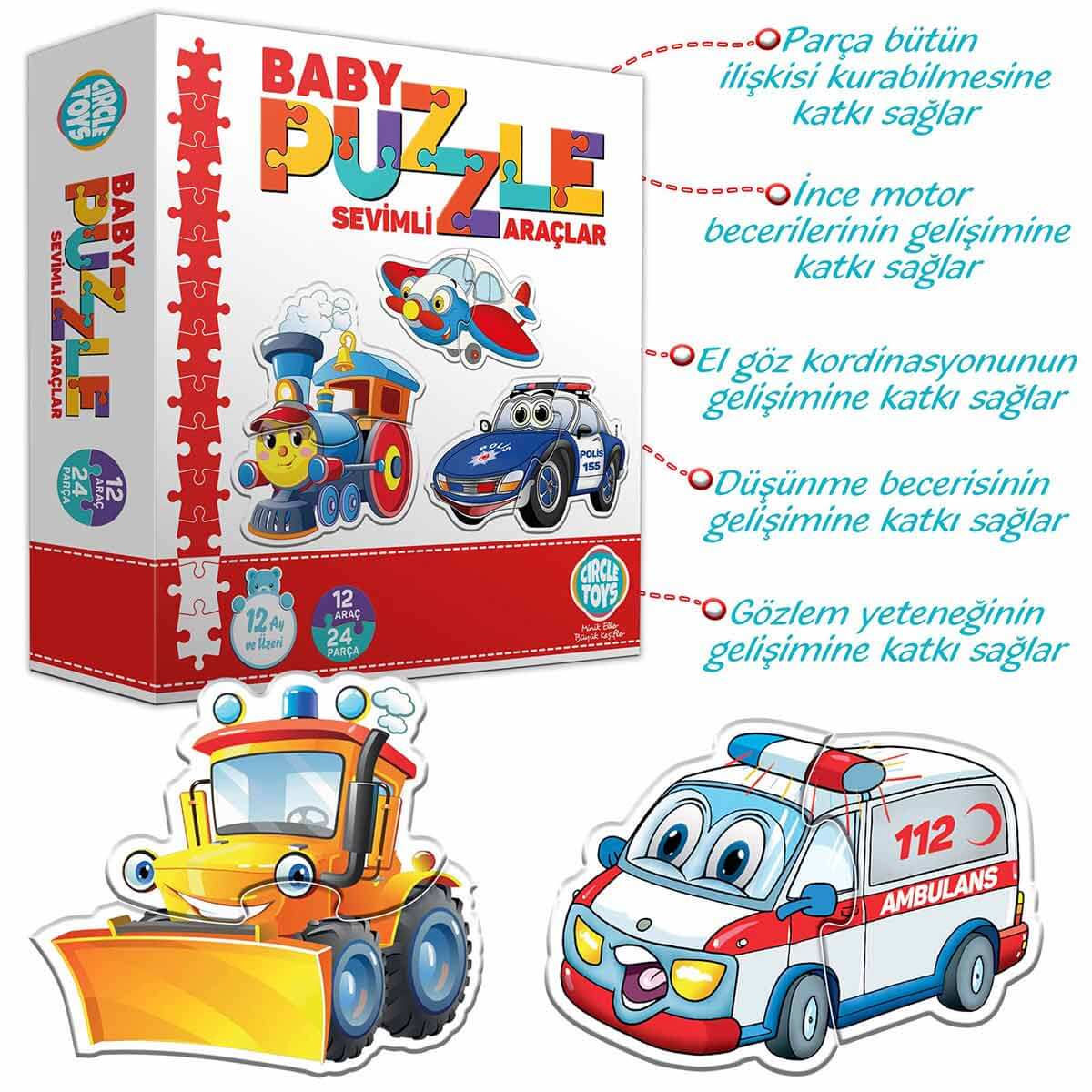 Circle Toys Baby Puzzle Sevimli Araçlar, çocukların hem bireysel olarak hem de aileleriyle birlikte keyifli vakit geçirebilecekleri, gelişimlerini destekleyen harika bir oyuncaktır.
