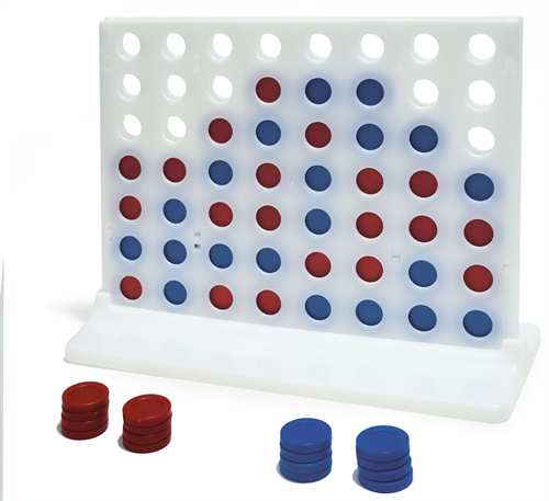 İçerik: 1 adet dikey oyun platformu ve iki farklı renkte yeterli sayıda pul.